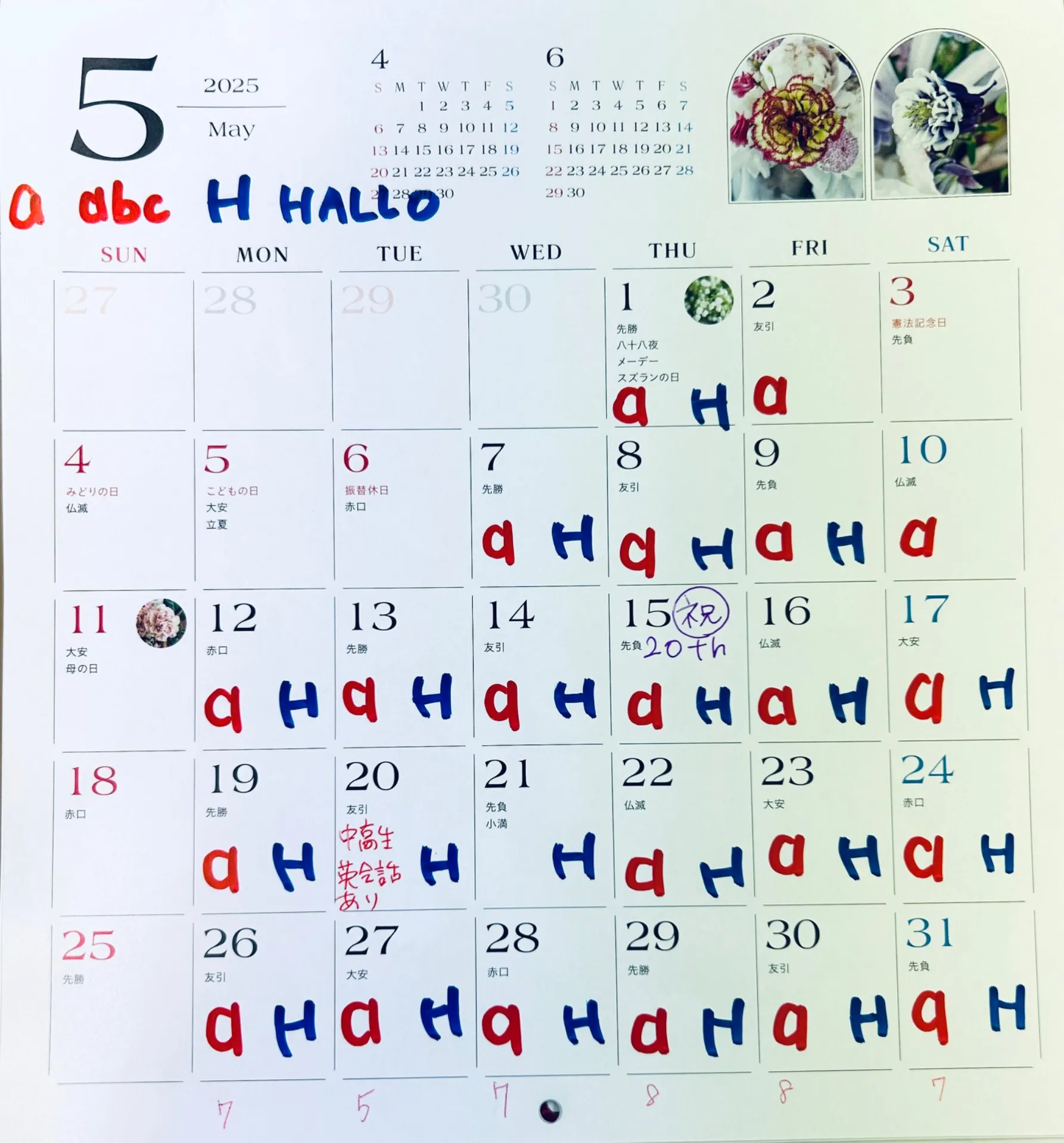 5月のレッスンスケジュールです。