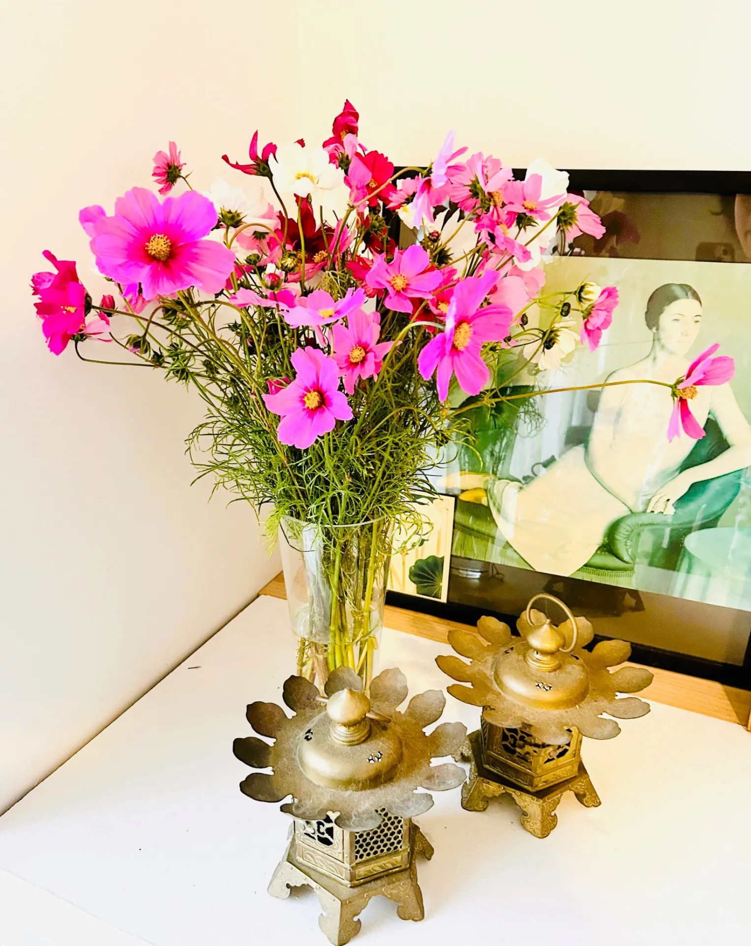 今回はお庭で咲いていたコスモスの花束を頂きました!
